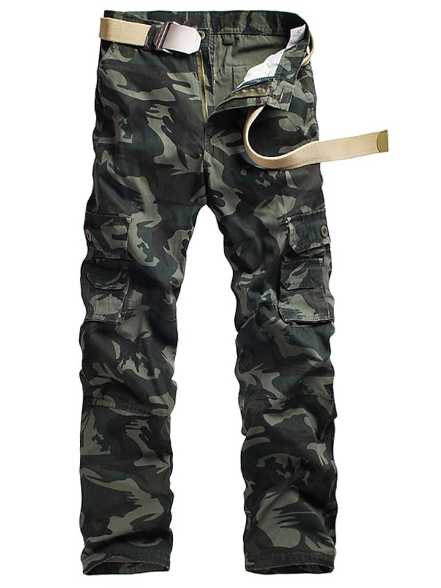 Men's Pants Tactical Cargo Trousers Zipper Pocket Multiple Pockets Camouflage Full Length Pants Daily Holiday Cargo Casual / Sporty Camouflage Army Green Camouflage Gray Inelastic / Spring